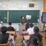本校は文科省指定の教育課程特例校として、3〜6年生の総合学習を一部削減し、年間35時間を英語活動に充て、児童のコミュニケーション力育成を図っています。
