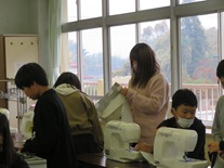 6年生の家庭科で、ミシンを使ってナップザックを作っています。ミシンを使っての作業を保護者ボランティアにお手伝いいただきました。ご協力いただきありがとうございました。
