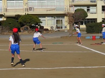 テストが終わって、6年生が体育の様子です。ルールを確認しながら、ベースボール型ゲームを楽しそうに行っていました。
